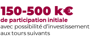 Le fonds intervient en pre-seed et en seed par un apport initial de 150 à 500 k€. Il est en capacité de suivre aux tours ultérieurs, avec un maximum de 2 M€ par participation.